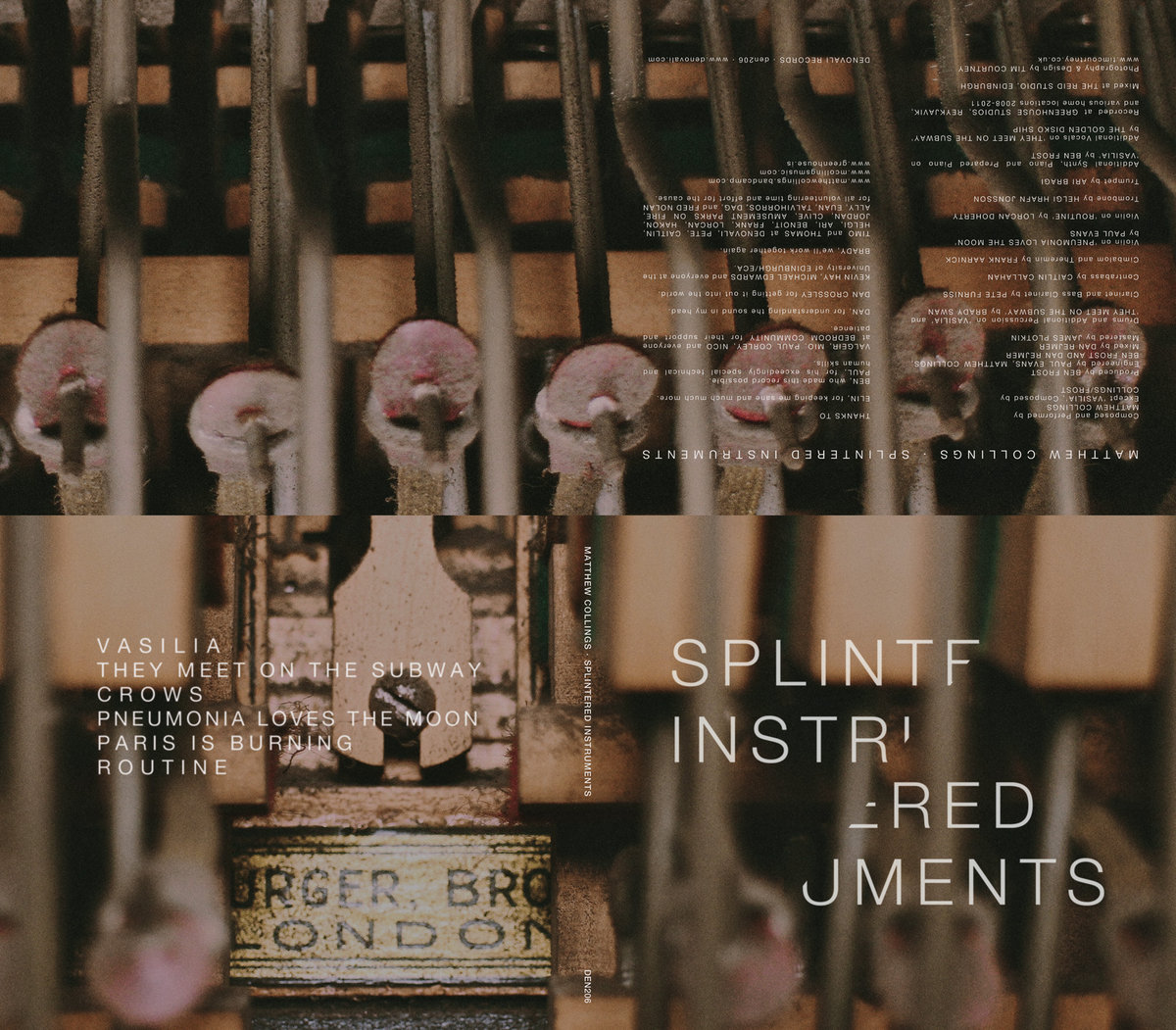 He worked closely with Bedroom Community's Ben Frost on the creation of “Splintered Instruments”, who took influence in the physicality and size of sound and helped to achieve him to reach into the deepest parts of human nature, pulling it out in a hybrid-pop-experimental-noise form. According to Matthew Collings the record is “a revolt against machines” understanding the sense of precision as something pretty unnatural. He avoids working with computers only using them for convenience, not as a principle. 90% of the record is organic sourced from or played on acoustic instruments or objects, being drawn to sound of every kind which is more human, more imperfect in its subtle variations.